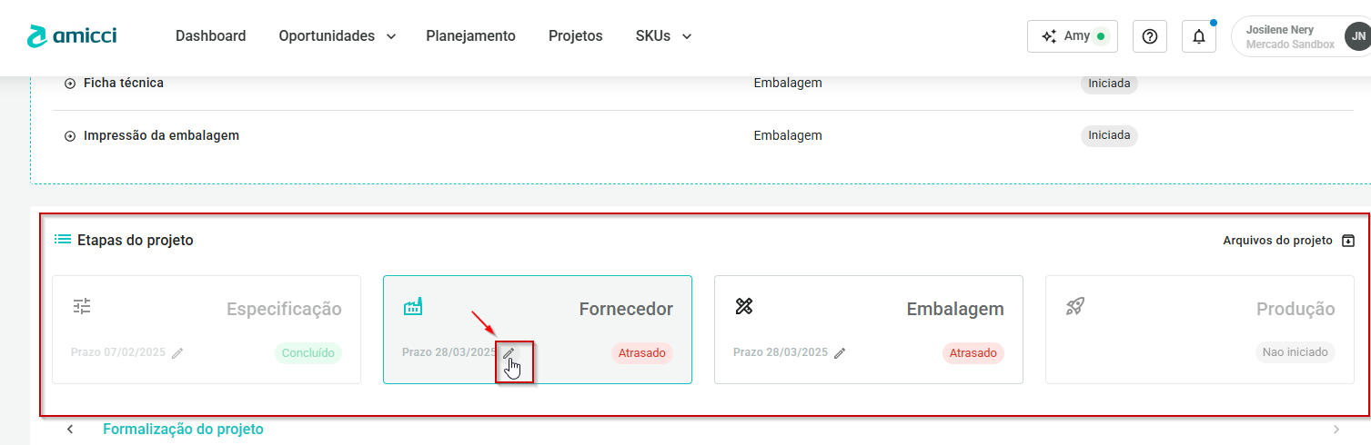 - Caso a edição seja de etapa, clique no lápis no canto direito da Macro etapa do projeto;