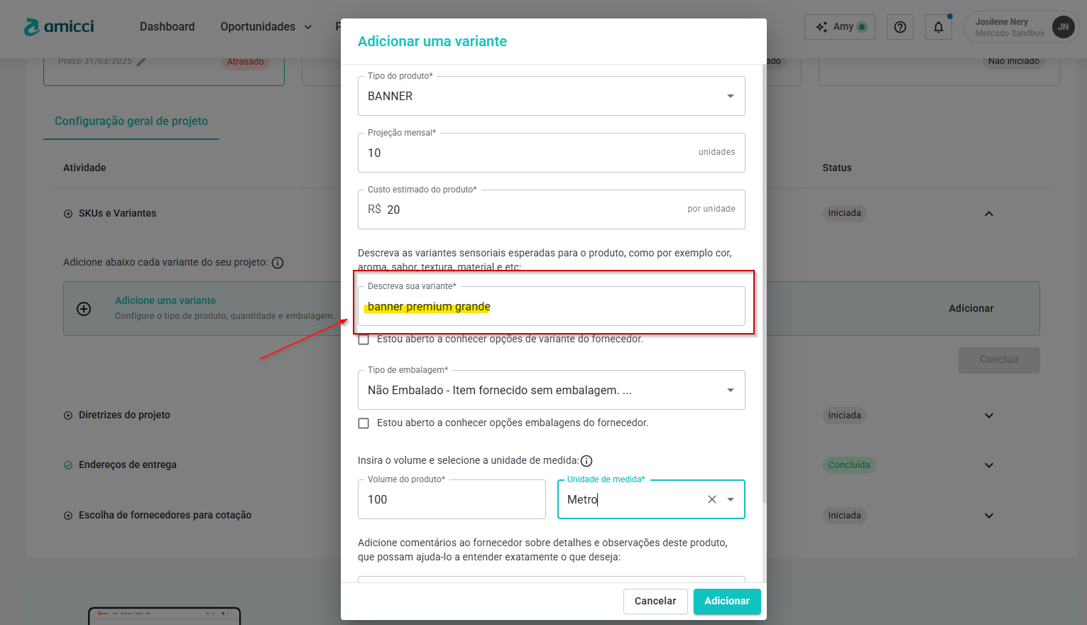 Neste artigo, explicamos como adicionar um SKU ao seu projeto, destacando as melhores práticas para preencher os dados corretamente. Além disso, fornecemos instruções detalhadas para garantir que sua especificação esteja bem estruturada e alinhada com as diretrizes da plataforma.