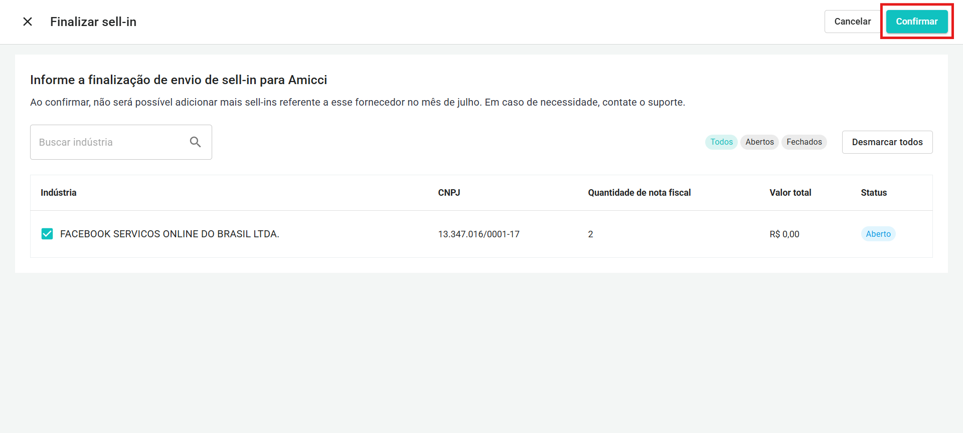 - Com as indústrias selecionadas, basta clicar no botão Confirmar .