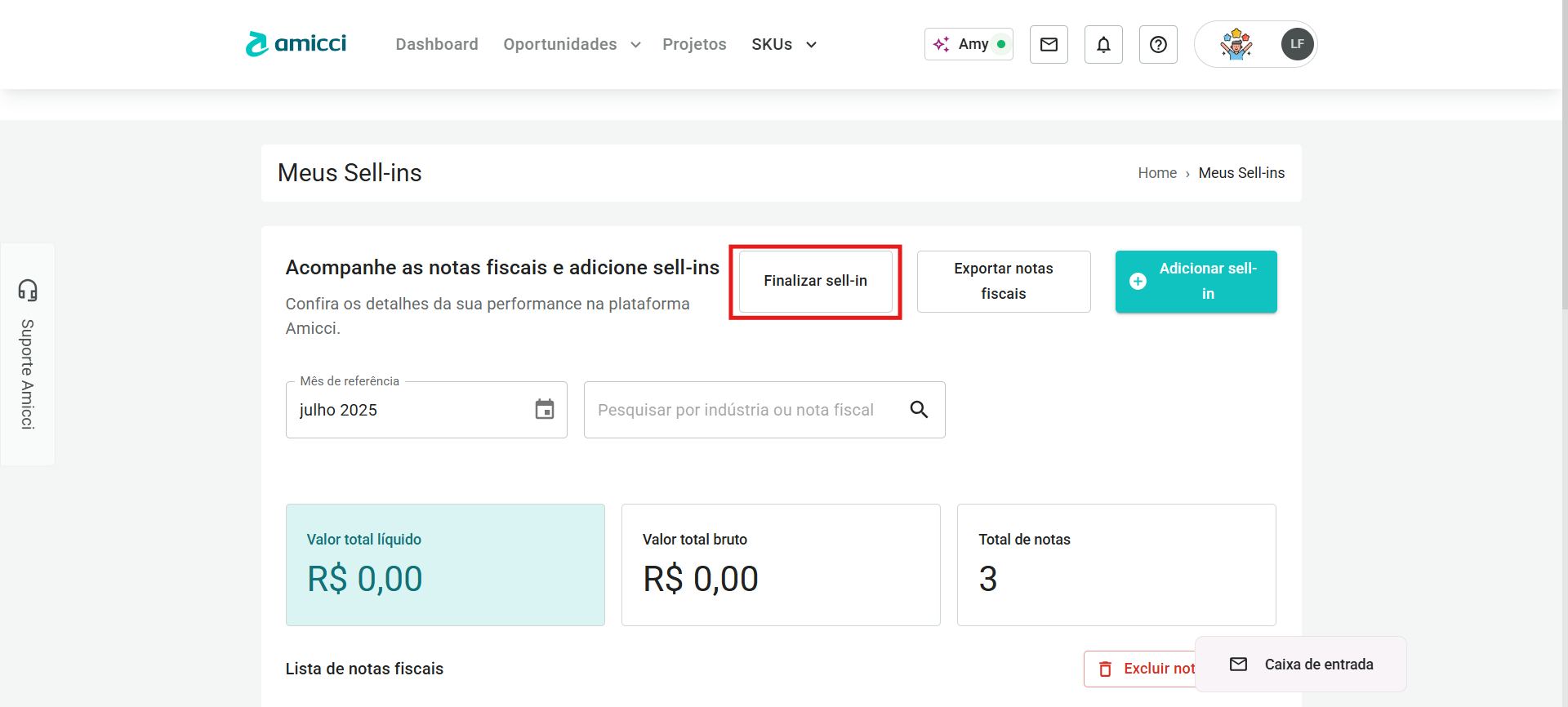 - Na página Meus Sell-ins, clique no botão Finalizar sell-in.