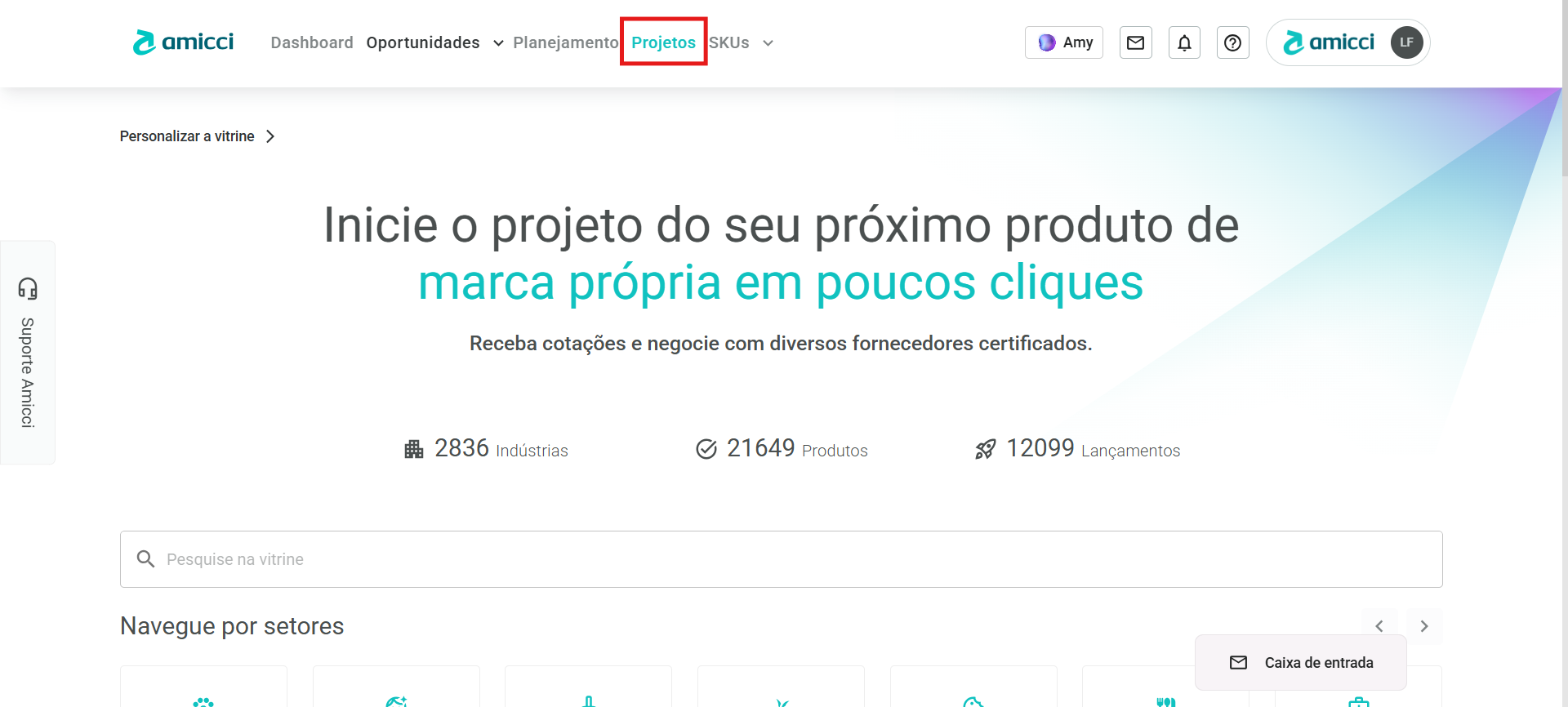 - Basta, na página inicial da plataforma, clicar em Projetos.