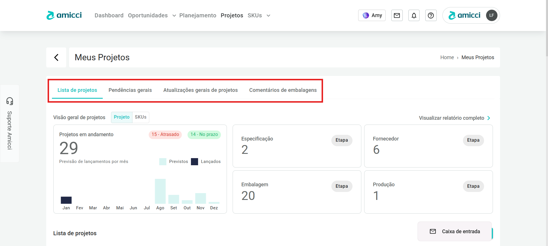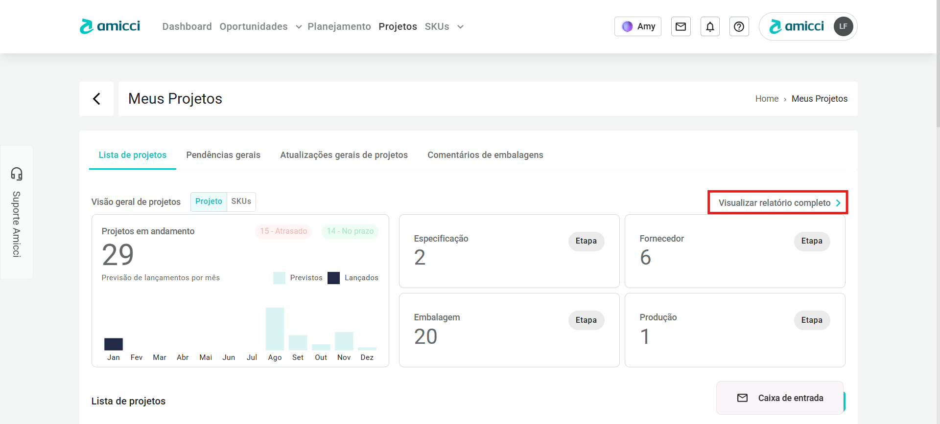- Previsão: O mês no qual o lançamento do projeto está previsto.
