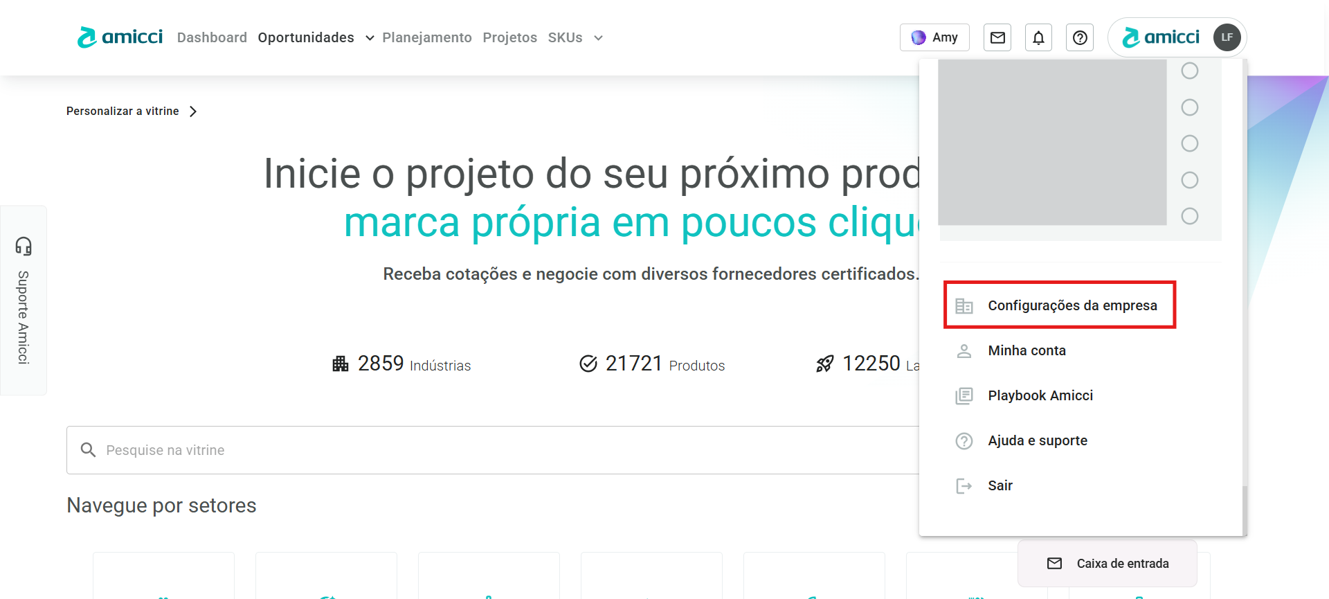 - No menu em cascata, você deve descer até encontrar o botão Configurações da empresa. Você deve clicar nele.