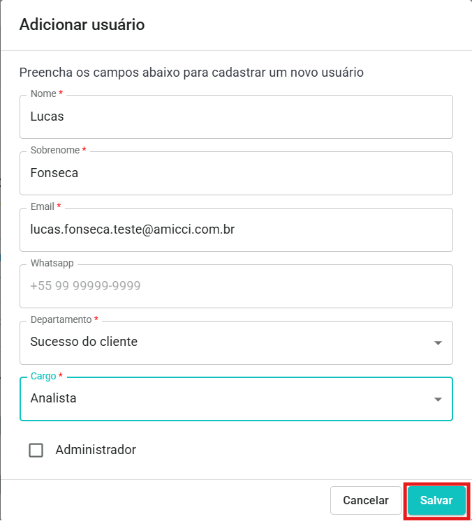 - Após ter preenchido todas as informações necessárias, basta clicar no botão Salvar.