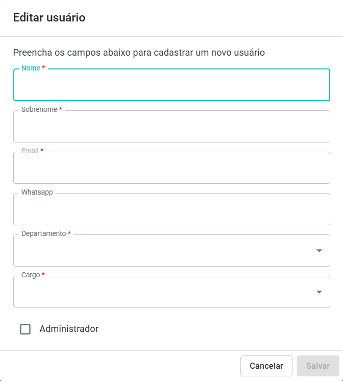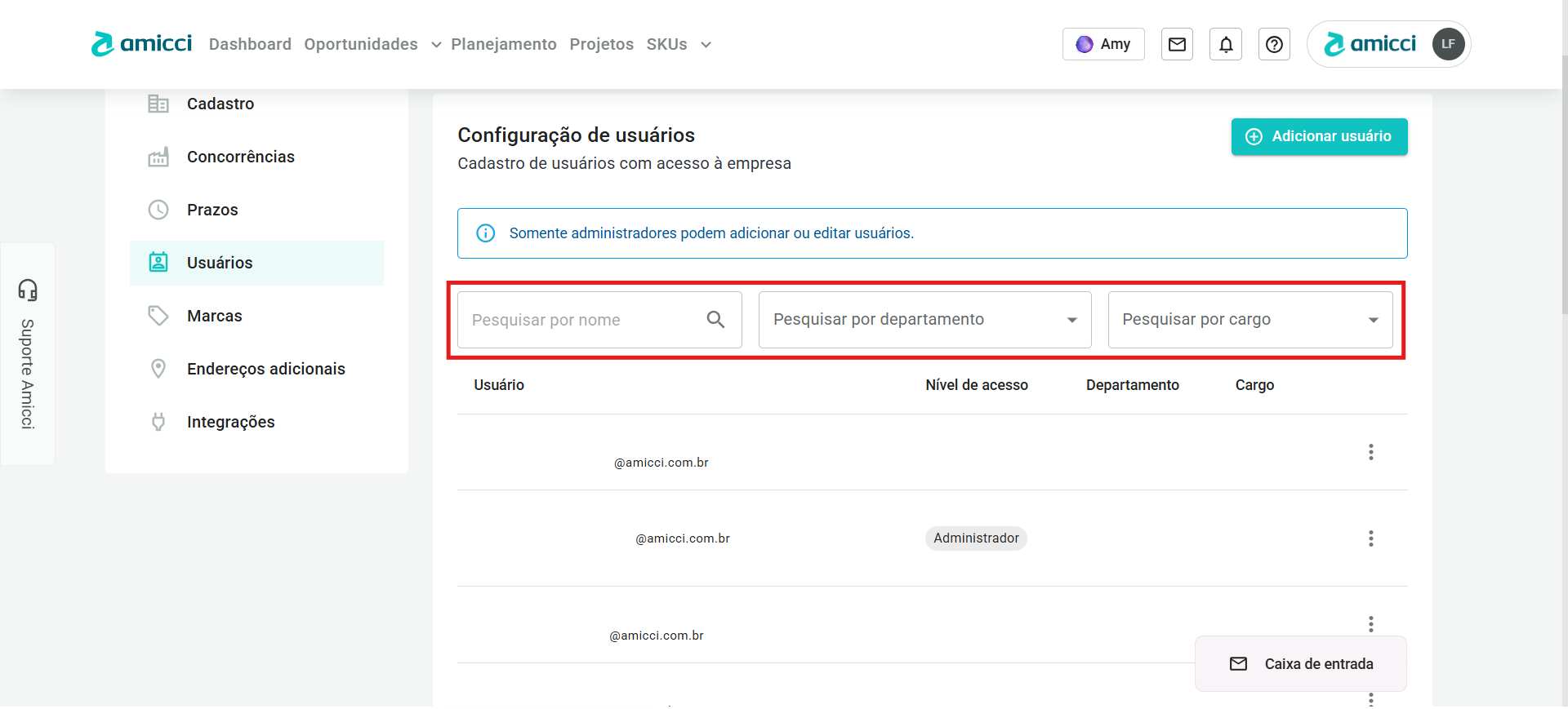 - Caso você deseje encontrar um colaborador específico na sua empresa, ter uma lista de usuários cadastrados muito extensa pode se tornar um problema. Visando ajudar a resolver isso, a plataforma dispõe de três campos de filtragem disponíveis: