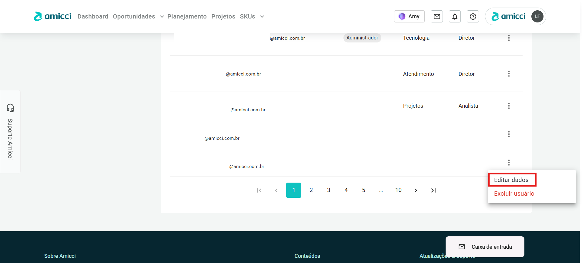 - Clientes: Pelo botão Suporte Amicci presente no canto esquerdo de todas as páginas da plataforma.