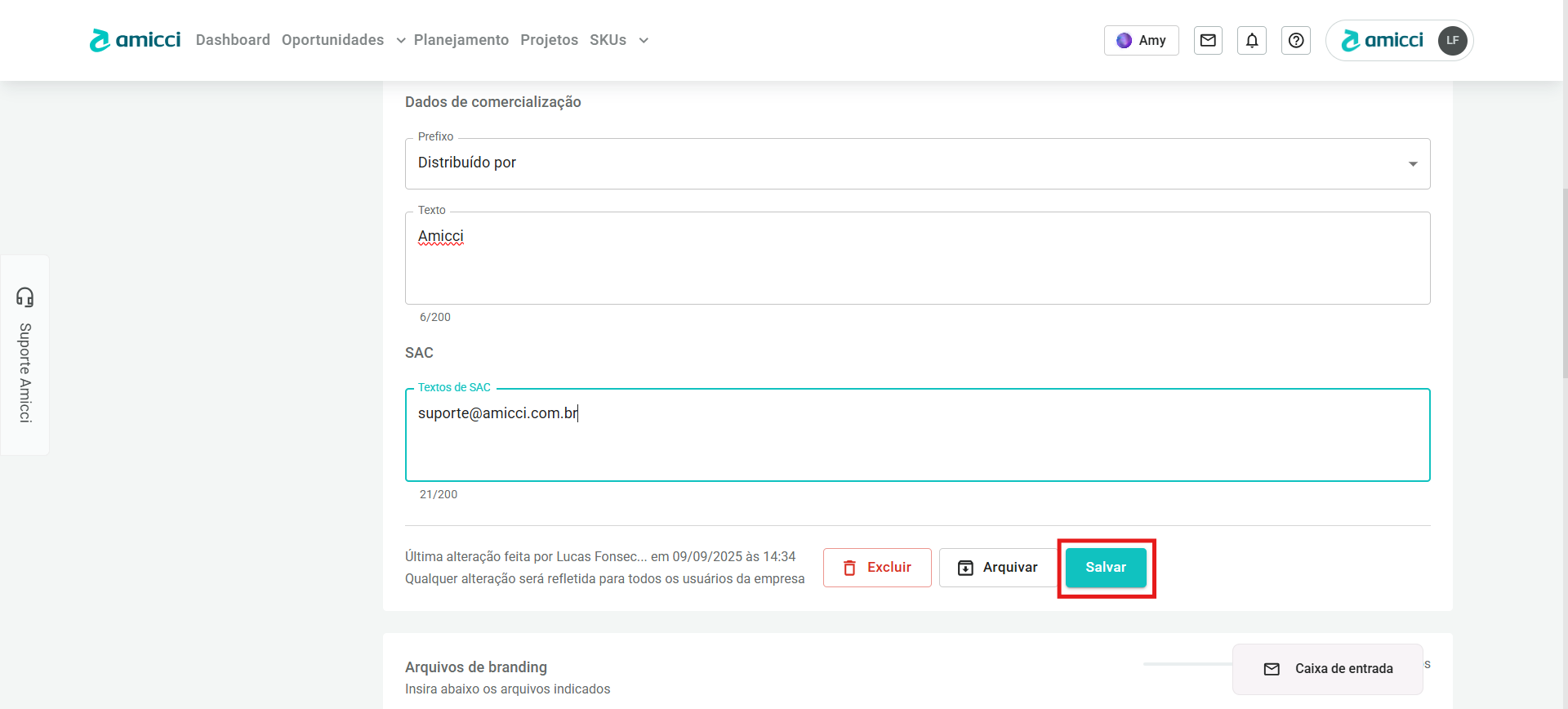 - Após editar todas as informações da marca que deseja, você deve clicar no botão Salvar.