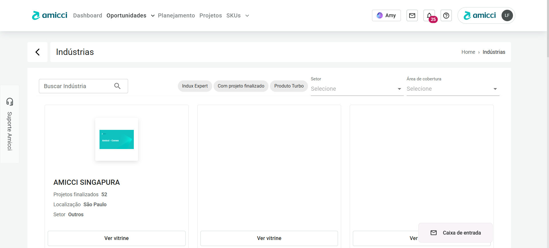 - Na Vitrine de Indústrias, você irá encontrar uma lista com todos os fornecedores disponíveis na plataforma.