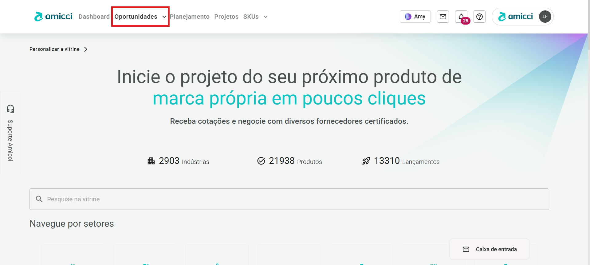 - No menu abaixo de Oportunidades, você deve clicar em Vitrine de indústrias.
