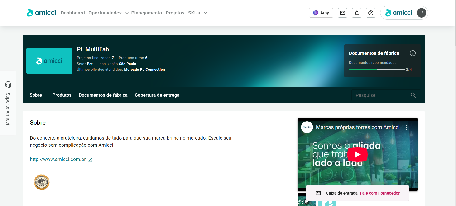 - Você pode ver quantos dos 4 documentos de fábrica recomendados o fornecedor tem.